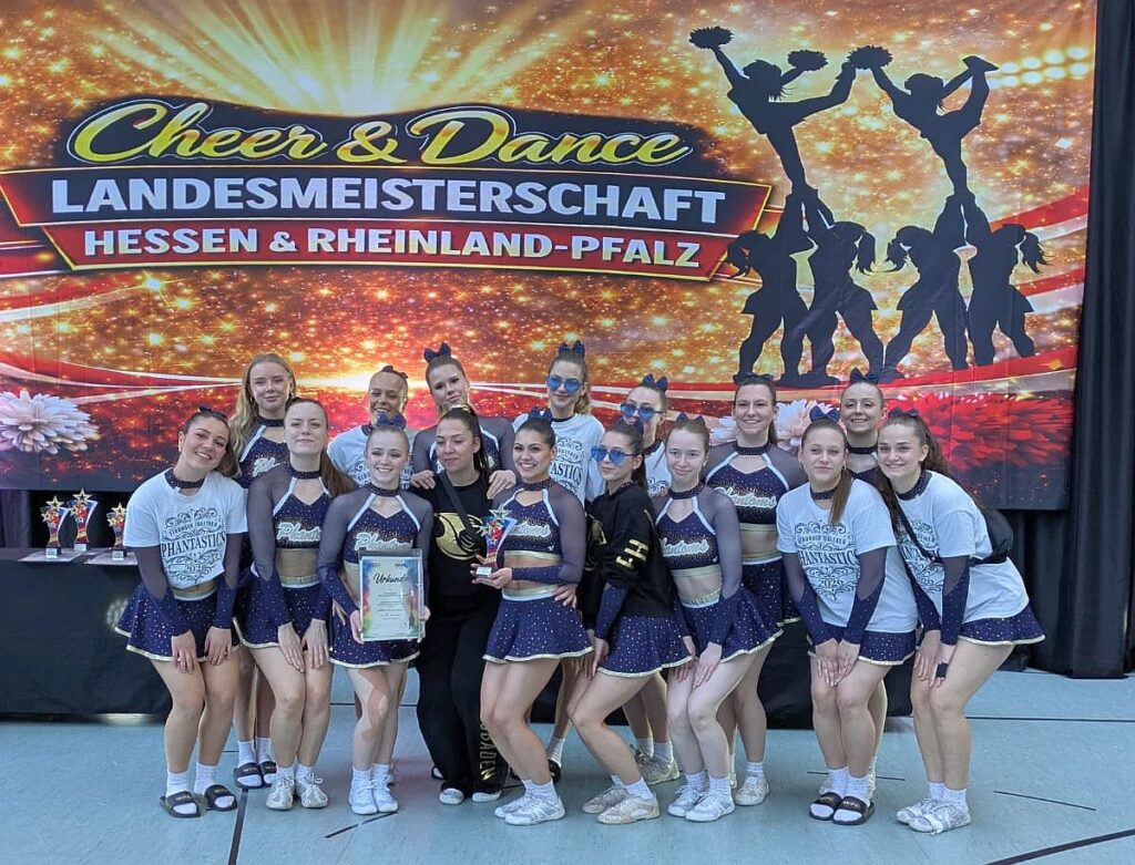 In der Kategorie PeeWee Cheer hatten sich die „Pharies“ der Phantoms in Marburg den Landesmeistertitel gesichert. Mit 203,5 Punkten gehören sie zu den Top Drei der qualifizierten Teams, nur „Mini Pepper“ vom Turnklubb zu Hannover (224,5 Punkte) und die „XS Minis“ vom ASC Bremen (204) wurden bei ihren jeweiligen Meisterschaften höher bewertet. Die „Dreamy Sib*Lynxs“ vom SV Grün-Weiß Großbeeren folgen mit 191 Punkten.