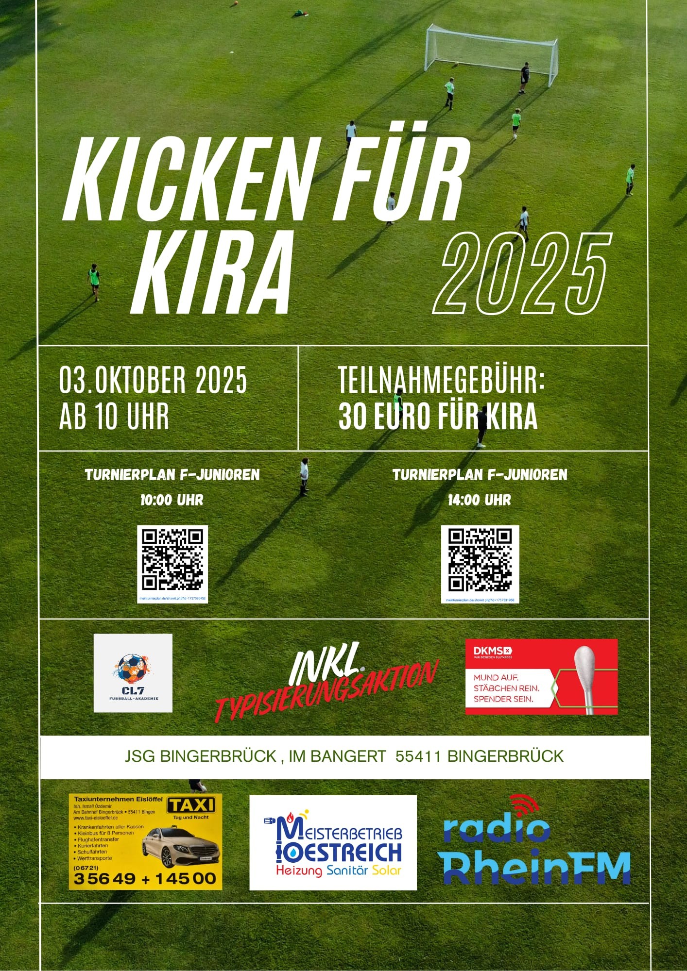 Bei „Kicken für Kira“ am 3. Oktober in Bingen zum Lebensretter werden Die Phantoms engagieren sich auch abseits des Footballfeldes und außerhalb der Saison. Das nächste Mal am 3. Oktober, ab 10 Uhr, wenn beim SV 1914 Bingerbrück, Im Bangert, 55411 Bingen, eine Typisierungsaktion der Deutschen Knochenmarkspenderdatei (DKMS) stattfindet. Der...Weiterlesen
